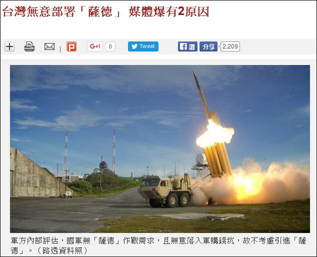 为什么台湾没有部署萨德系统?