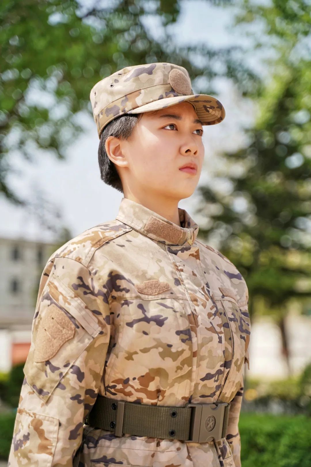 女兵身着军装,首先映入眼帘的是军装的威严,绿色的迷彩服,肩章、领章、帽徽,每一处都显得庄重而神圣,在这份威严中,女性的柔美特质同样不容忽视,她们以柔和的线条、优雅的姿态,为军装增添了别样的风采,军装上那一抹鲜艳的红色肩章带,仿佛是她们坚强意志的象征,既彰显了军人的荣誉,又体现了女性的柔情。