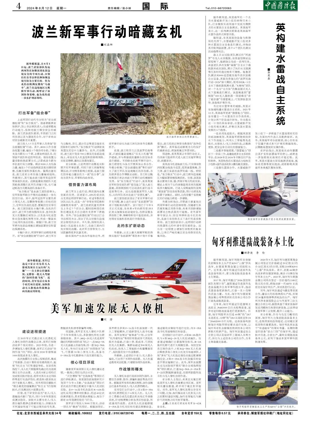 在国际军事观察板块,早报深入分析了全球主要国家的国防军事发展动态,美国、俄罗斯等国家的军事发展依然备受关注,新兴国家的崛起也在改变全球军事格局,早报还关注了国际军备竞赛、全球安全治理等问题,为读者提供了丰富的国际军事资讯。