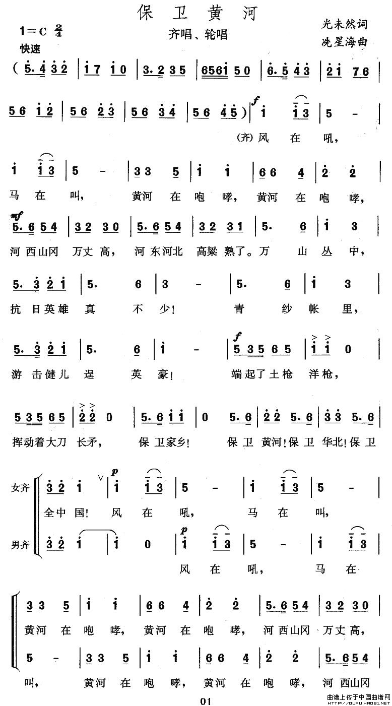 《保卫黄河》的歌词简洁明了,寓意深刻,歌词中,“风在吼,马在叫,黄河在咆哮,黄河在咆哮”描绘了战争年代的紧张氛围,展现出中华民族在危难之际的顽强抗争精神。“万众一心保卫家乡,保卫黄河,保卫华北,保卫全中国”则表达了全民族的共同心声,激励人们为保卫家园、捍卫民族尊严而英勇斗争。