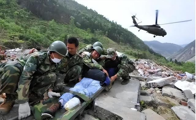 1、解放军官兵冒着余震、泥石流等危险,徒步进入灾区,展开救援行动,他们在废墟中挖掘被困人员,为灾区群众提供医疗救治和物资保障。