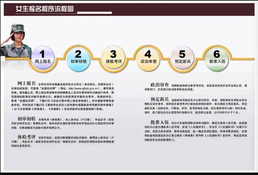 5、公示名单,正式入伍,经过以上环节,符合条件的报名者将被列入公示名单,正式成为女兵的一员。
