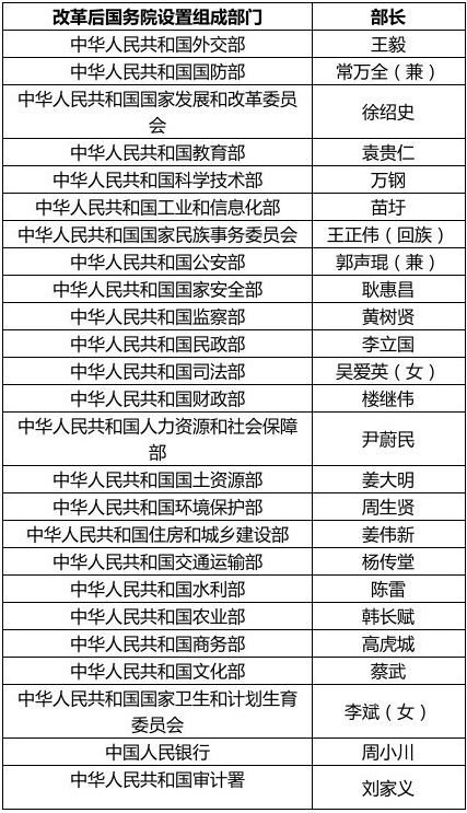 以下是部分中华人民共和国部长名单: