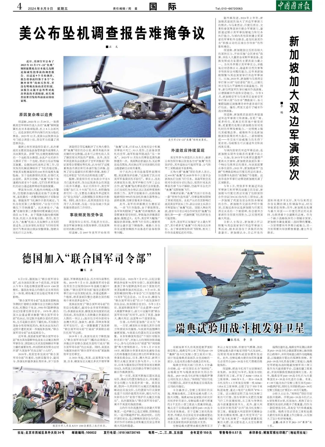 今日国防军事早报重点关注了国内外军事动态、国防科技进展以及军事战略研究等方面的最新消息,全球安全形势持续紧张,局部冲突与地缘政治博弈加剧,各国需要加强国际合作,共同应对全球性威胁,我国军队改革稳步推进,现代化建设取得显著成果,国防实力不断提升,军事科技创新取得重大突破,新型武器装备陆续亮相,智能化、信息化成为军事科技发展的主要趋势。