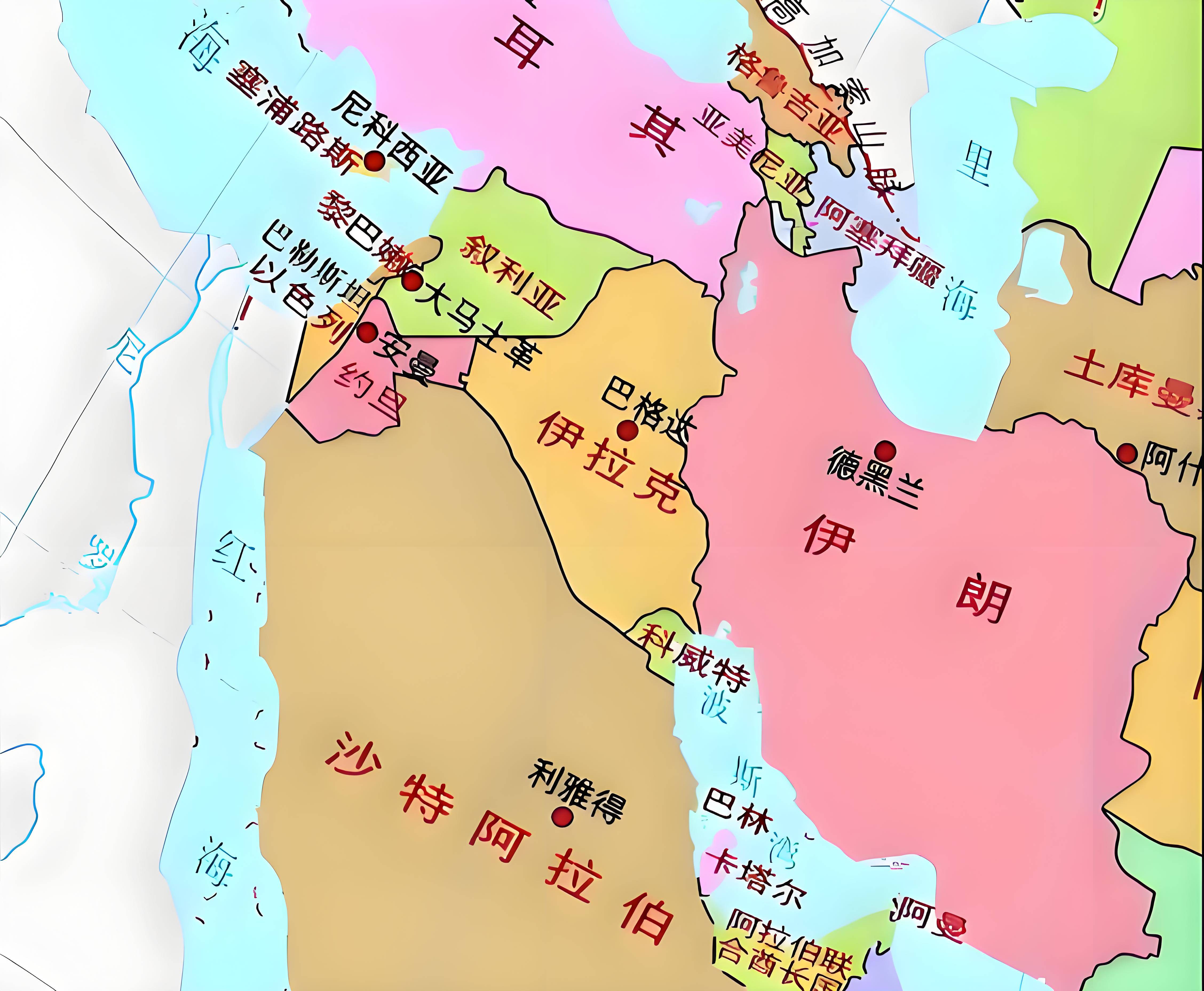 中东地区的历史悠久,文明古国如古埃及、古巴比伦等曾在此地繁荣发展,中东地图上的诸多地名承载着丰富的历史信息,耶路撒冷作为三大宗教圣地,见证了无数王朝的更迭和信仰的交融,中东地区的冲突与和平问题一直是国际关注的焦点,地缘政治格局的演变也反映在中东地图上。