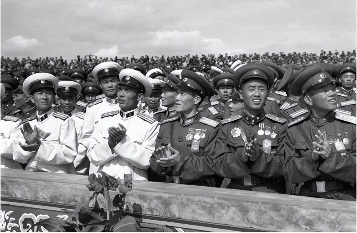 4、军官58式军服:图片展示的是军官穿着的58式军服,这款军服在设计和制作上更加精细,体现了军官的威严和地位。