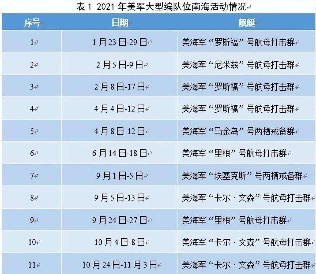 在2021年,美国舰队在南海的活动呈现出以下态势: